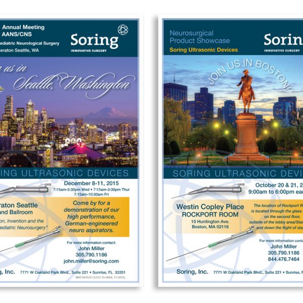 Soring Inc is a German designer and manufacturer of ultrasonic surgical technology. A USA Sales and Marketing office was opened in South Florida and I worked closely with the Director and staff to design the interior of the office space, create USA branded stationery and to design and print collateral materials specific to the USA market.